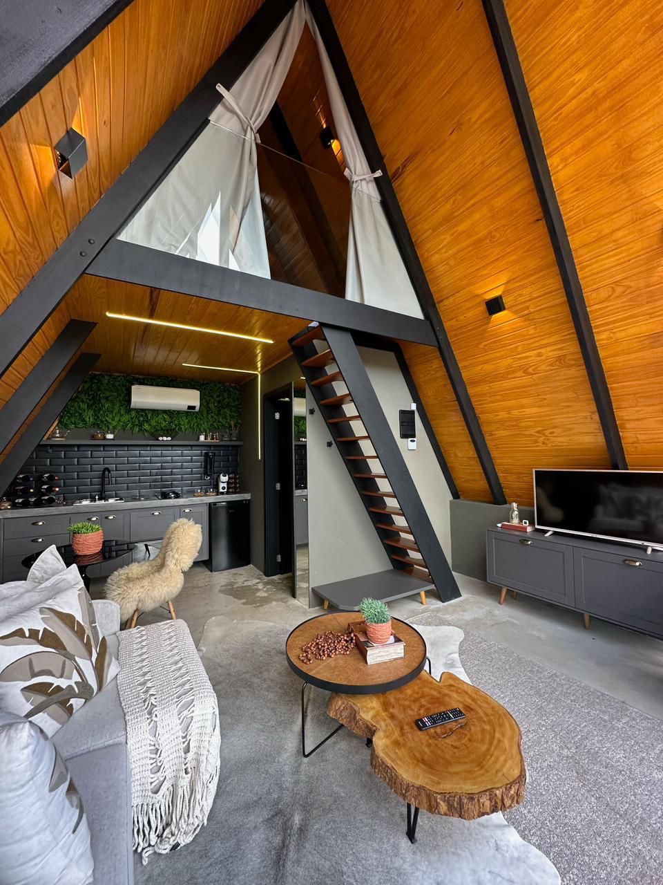 Com design em formato A-Frame, a Malbec é extremamente charmosa, aconchegante e sofisticada. Possui cozinha equipada, calefator estilo europeu, ar condicionado, aquecedor de toalhas, adega, lareira externa, churrasqueira, redário suspenso e uma banheira de imersão interna com uma vista incrível!